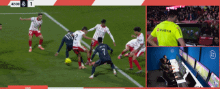 40’姆巴佩在门前混战中捅射破门,但因手球在先进球无效。